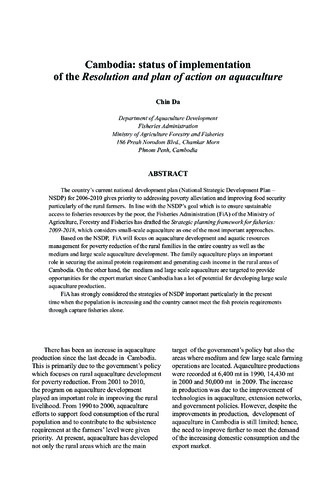 Cambodia: Status of implementation of the resolution and plan of action on aquaculture.
