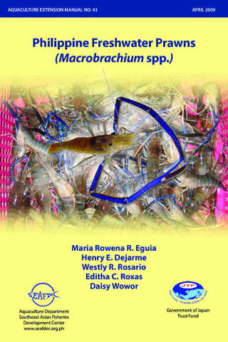 Eguia, M. R. R., Dejarme, H. E., Rosario, W. R., Roxas, E. C., & Wowor, D. (2009). Philippine freshwater prawns (Macrobrachium spp.). Tigbauan, Iloilo, Philippines: SEAFDEC Aquaculture Department.
