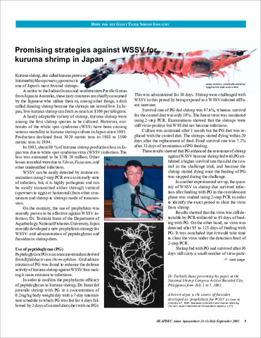 Promising strategies against WSSV for kuruma shrimp in Japan