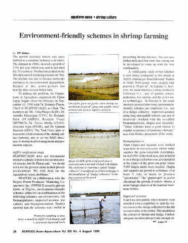 Aldon, E. T. (1999). Environment-friendly schemes in shrimp farming. SEAFDEC Asian Aquaculture , 21(4), 26-35. http://hdl.handle.net/10862/2838