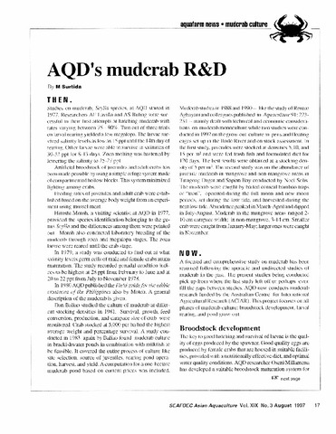 Surtida, M. (1997). AQD's mudcrab R&D. SEAFDEC Asian Aquaculture , 19(3), 17-20. http://hdl.handle.net/10862/2911