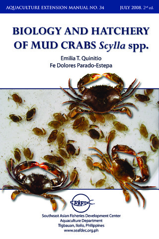 Quinitio, E. T., & Parado-Estepa, F. D. (2008). Biology and hatchery of mud crabs Scylla spp. (2nd Ed.). Tigbauan, Iloilo, Philippines: Aquaculture Department, Southeast Asian Fisheries Development Center.