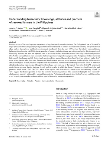 Mateo, J., Campbell, I., Cottier-Cook, E., Luhan, M. R., Ferriols, V. M. E., & Hurtado, A. Q. (2021). Understanding biosecurity: Knowledge, attitudes and practices of seaweed farmers in the Philippines. Journal of Applied Phycology , 33(2), 997-1010. https://doi.org/10.1007/s10811-020-02352-5