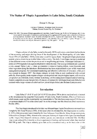 The status of tilapia aquaculture in Lake Sebu, South Cotabato