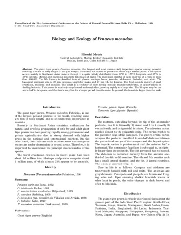 Biology and ecology of Penaeus monodon