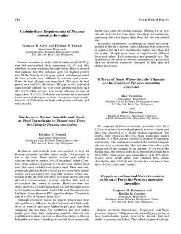 Piedad-Pascual, Felicitas (Philippine Council for Aquatic and Marine Research and Development, 1989)This paper echoes what transpired during the first International Conference of Penaeid Prawns/Shrimps held in Iloilo City in December 4-7, 1984, particularly on the Nutrition nd Feed Development. Around 25 papers were ... -